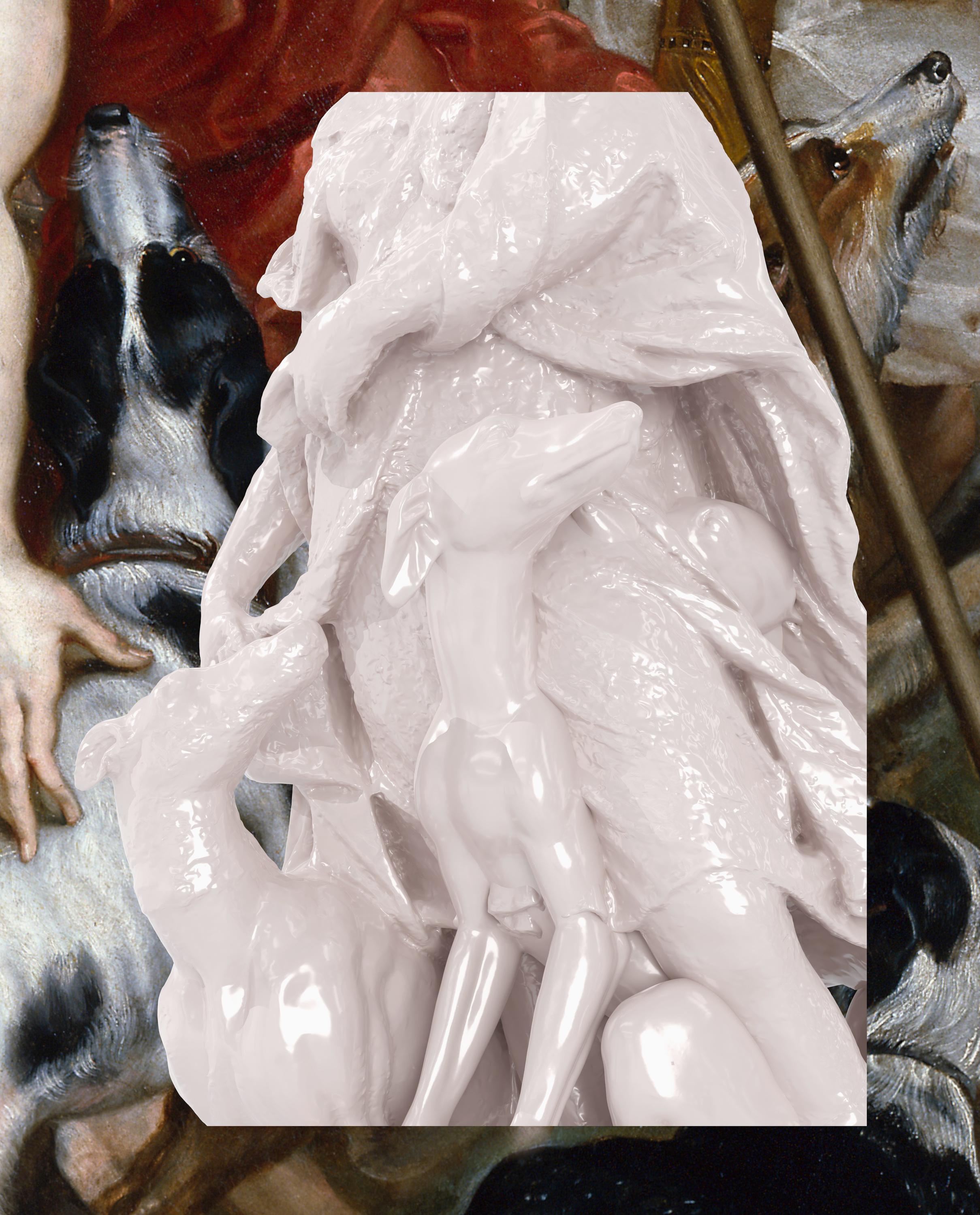 übermalter Inkjetdruck auf Leinwand auf rückseitig bedrucktem Aluminium., Acrylglas