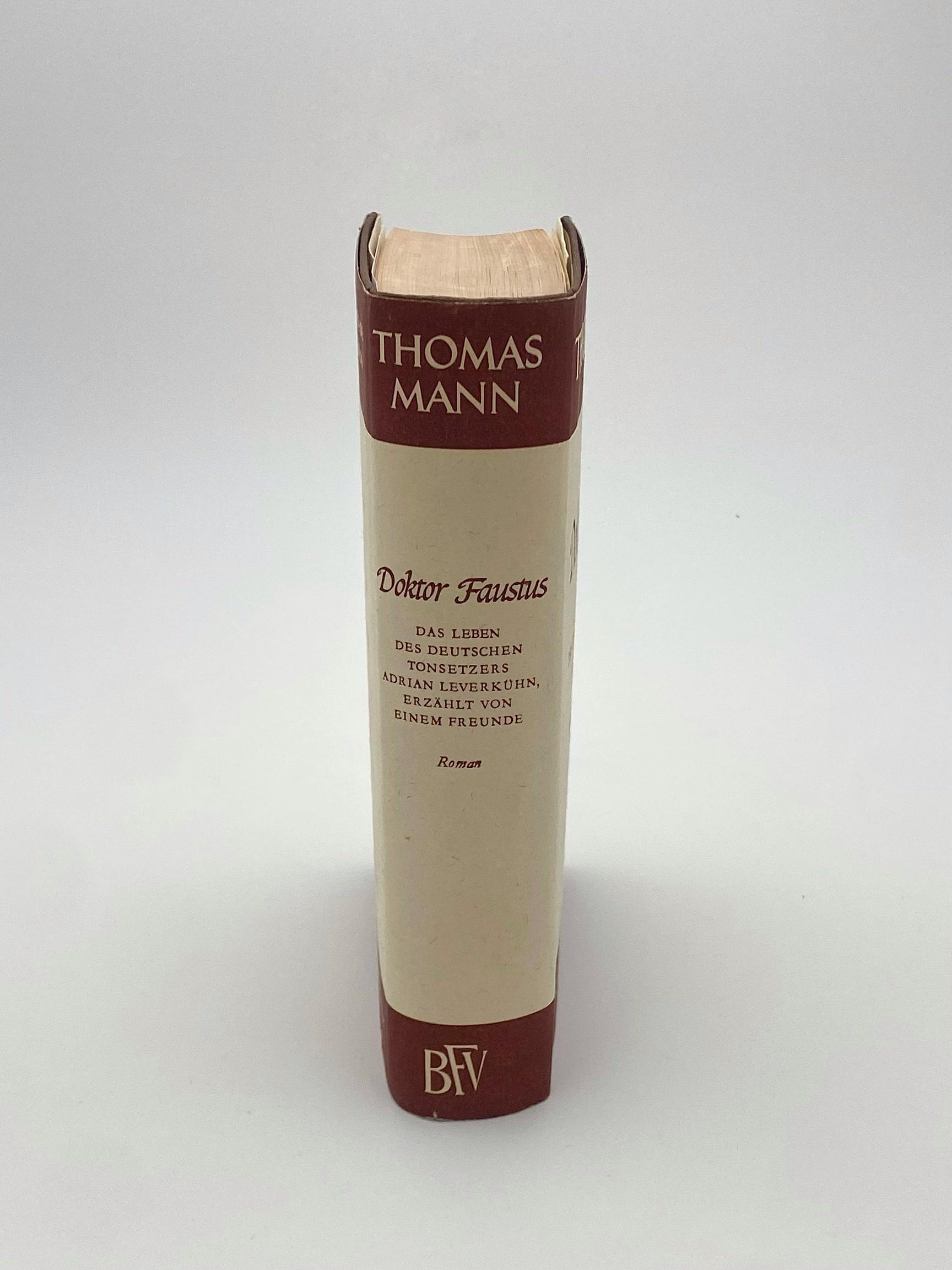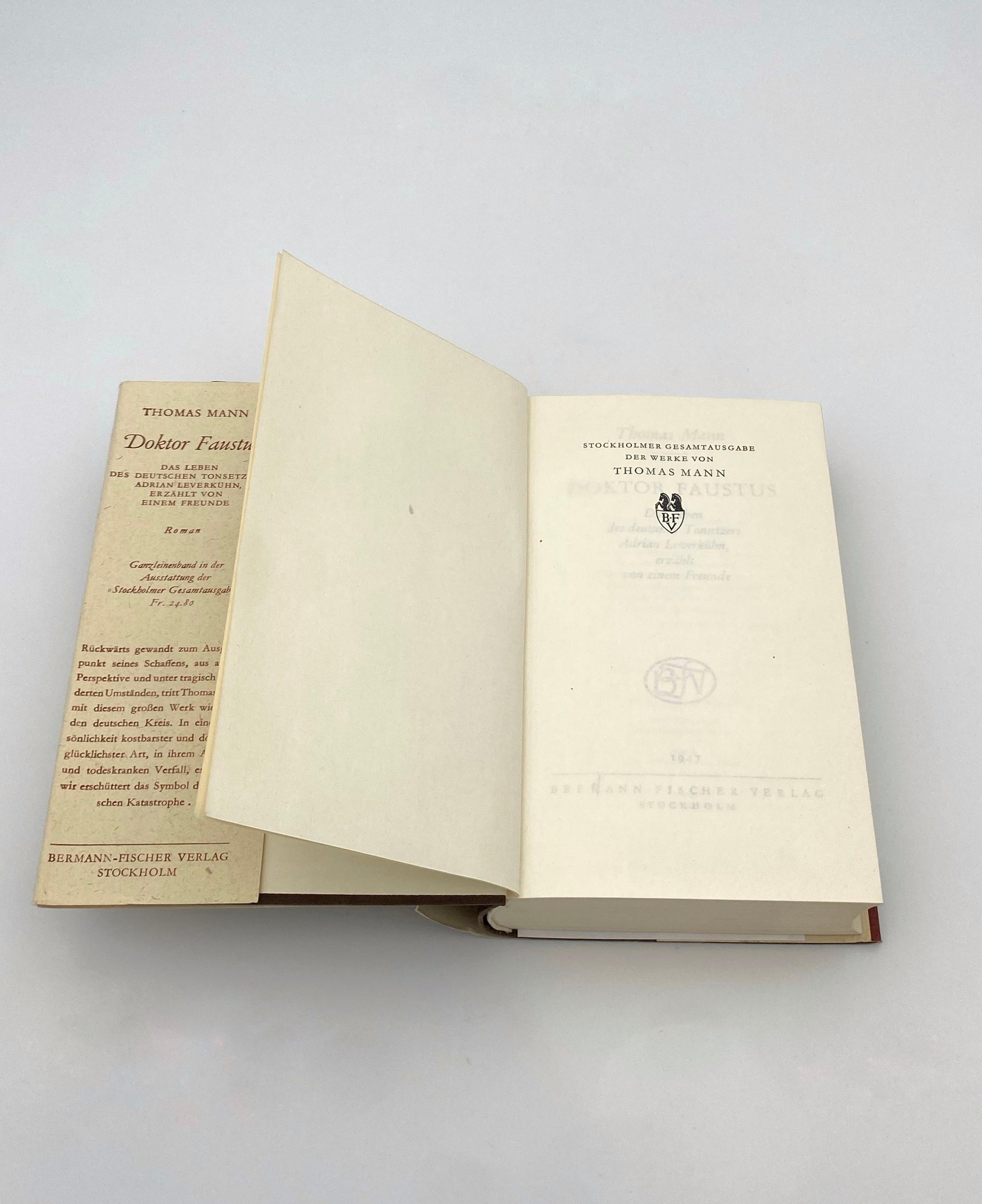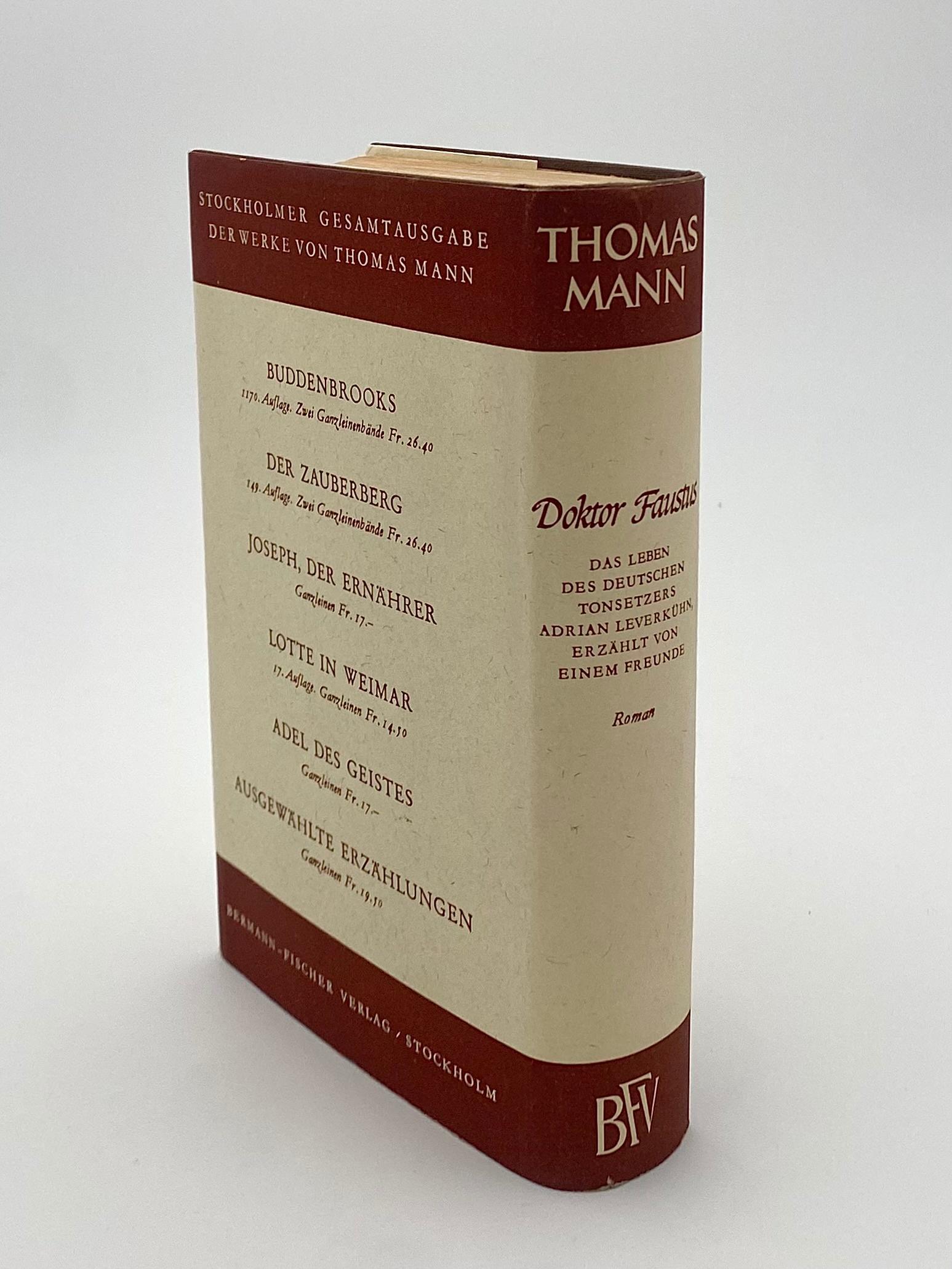 Nahezu verlagsfrisches Exemplar der epochalen Auseinandersetzung Thomas Manns mit dem Geist und Ungest deutscher Geschichte und dem Fausmythos. An diesem Roman arbeitete Mann ab 1943 im kalifornischen Exil und setzte damit den Abschluss seiner Joseph-Tetralogie.