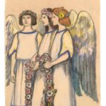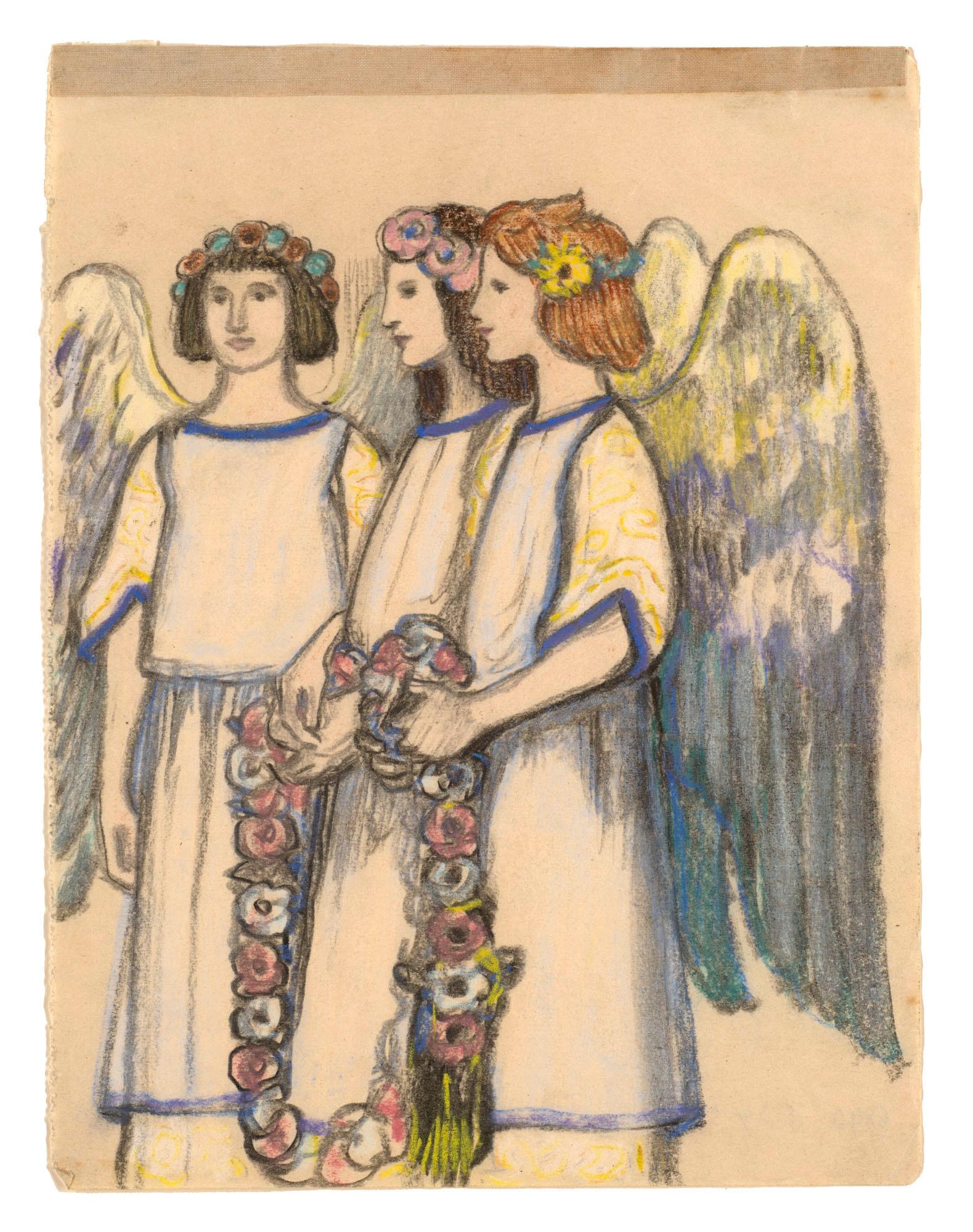 Bei dieser feinen Pastellzeichnung handelt es sich um einen Illustrationsentwurf zu Gerhart Hauptmanns „Hanneles Himmelfahrt“. Mit Hauptmann verband Ludwig von Hofmann eine Freundschaft, die sich in einer umfangreichen Korrespondenz niederschlug.