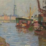 1903 organisierte er eine große Impressionisten-Ausstellung im Secessionsgebäude, der 1908/9 eine Reihe weiterer Kunstschauen folgte. Er teilte die Vorliebe der Impressionisten für einfache Motive und die Darstellung des modernen, industriellen Lebens, sowie die Erkenntnis, dass es mehr auf die genaue Beobachtung und das Wie der Darstellung ankommt als auf das Was. Sein Hamburger Hafen wirkt mit den willkürlich angeschnittenen Hafenmotiven im Vordergrund und einem fast achtlos in den Hintergrund gestellten Hauptmotiv wie ein Schnappschuss, der den Augenblick einfängt, In diesem Augenblick steckt allerdings die ganze Stimmung des Hafens. Wie man ein Gemälde mit Stimmungsgehalt auflädt, hatte er bei seinem „Meister“ Emil Jakob Schindler gelernt. Beim Gemälde „Der Hamburger Hafen“ übertrug er die Stimmungsmalerei nun erfolgreich auf ein Motiv der industriellen Arbeitswelt. Sein Strich und seine Farbwahl machen es zu einem spannenden, modernen, kleinen Meisterwerk. Das fast quadratische Format hat es im Übrigen mit vielen Werken der Wiener Secession gemeinsam.