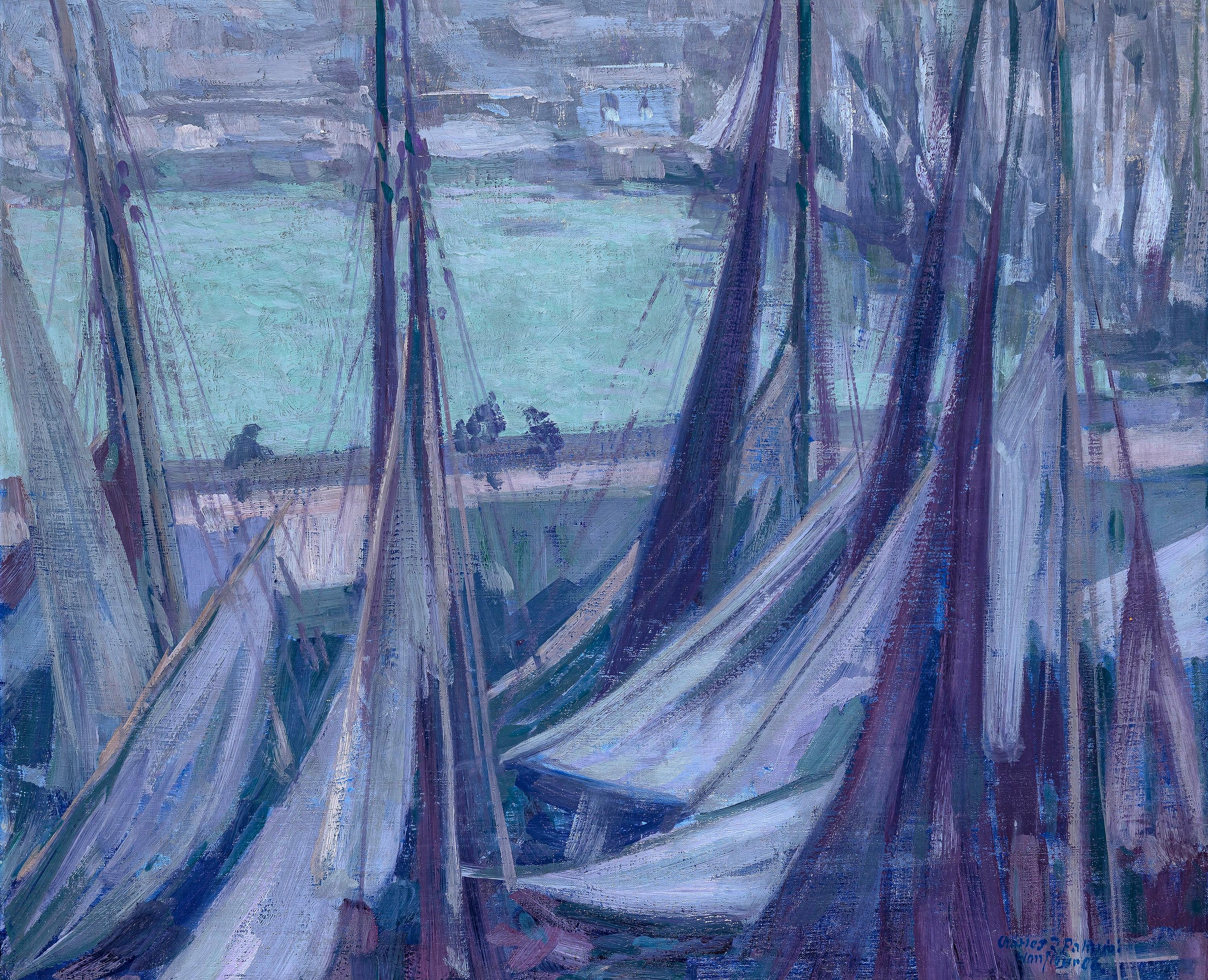 Gartenreich seine berühmten Seerosenbilder malte, besuchte Palmié den in der Normandie gelegenen Ort Honfleur, an dem die Seine in den Ärmelkanal mündet. Das Hafenbecken mit seinen Fischer- und Segelbooten bot dem Künstler ein vielseitiges Spektrum an Motiven, welche er en plein air direkt auf der Leinwand festhielt. Ziel dieser Arbeitsweise ist die Erfassung unterschiedlicher Wirkungsweisen von Licht und Farbe anhand desselben Gegenstandes. Hierbei geht es weniger um den Inhalt als vielmehr die Autonomie der Malerei, ein zu Beginn des 20. Jahrhunderts ebenso modernes wie revolutionäres künstlerisches Konzept!