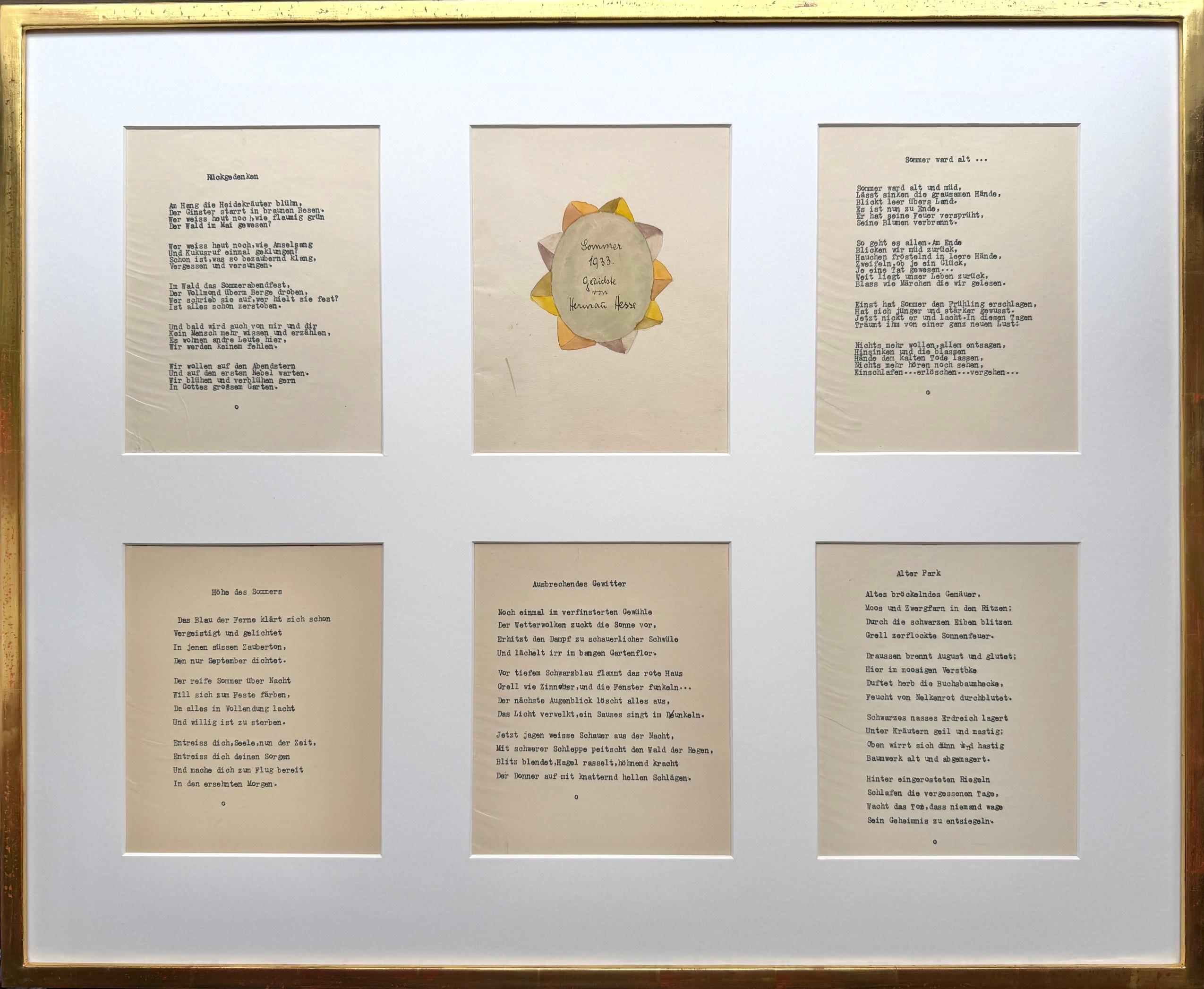Hermann Hesse stellte immer wieder Gedichte für Bewunderer seiner Werke und Freunde zusammen, teils auch mit dazugehörigen Aquarellen. Der Gedichtzyklus „Sommer 1933“ entsteht im Dörfchen Montagnola, oberhalb des Luganer Sees, dort lebte Hesse seit 1919. Er durchstreifte die Tessiner Landschaft und ließ seine, von der Jahreszeit geprägten Beobachtungen und Empfindungen in die Lyrik einfliessen. Im Zeitraum von Ende Juni bis Ende August 1933 verfasste er diese fünf sowie weitere Gedichte.