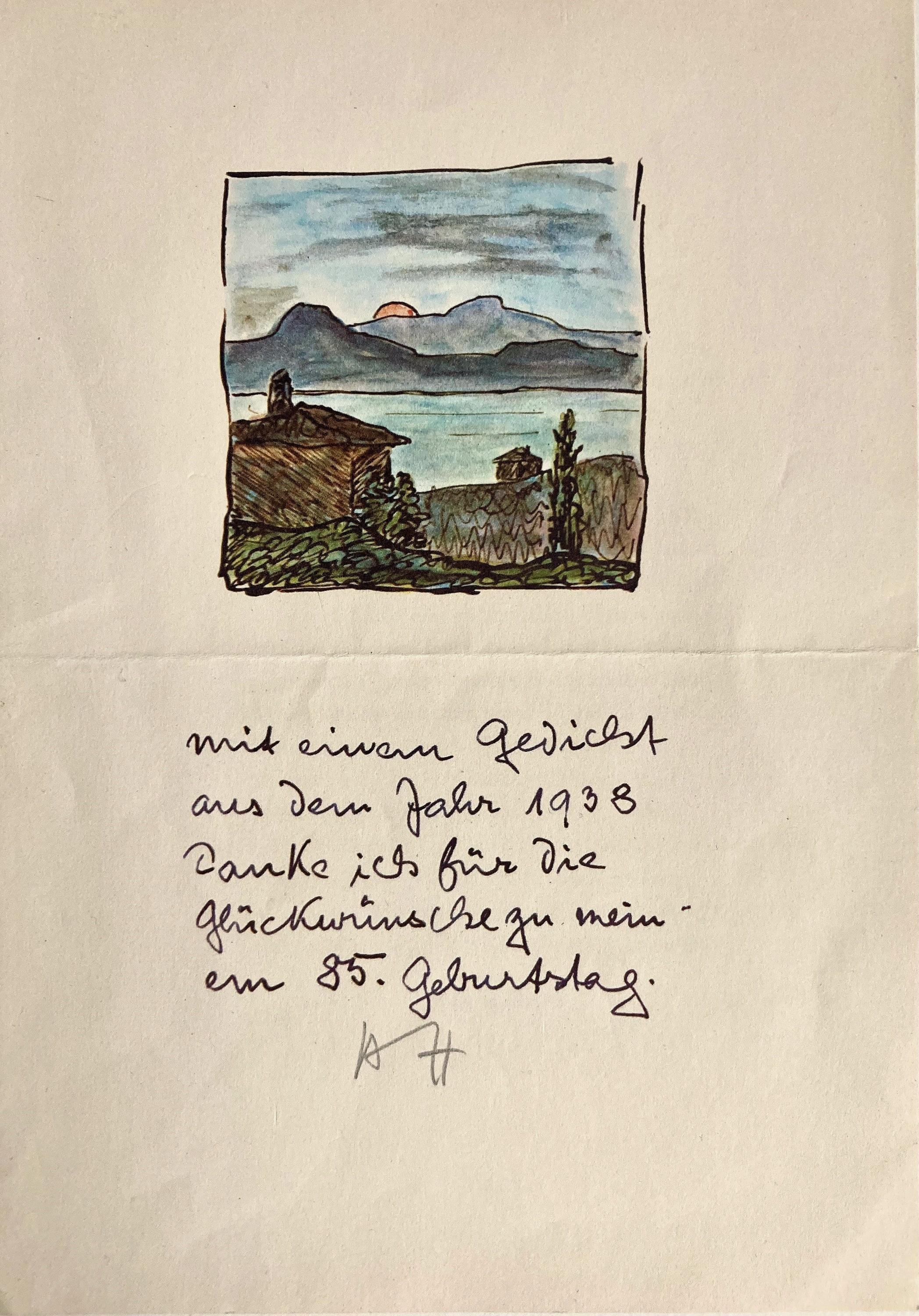 Mit gedrucktem Gedicht „Föhnige Nacht“ von 1938