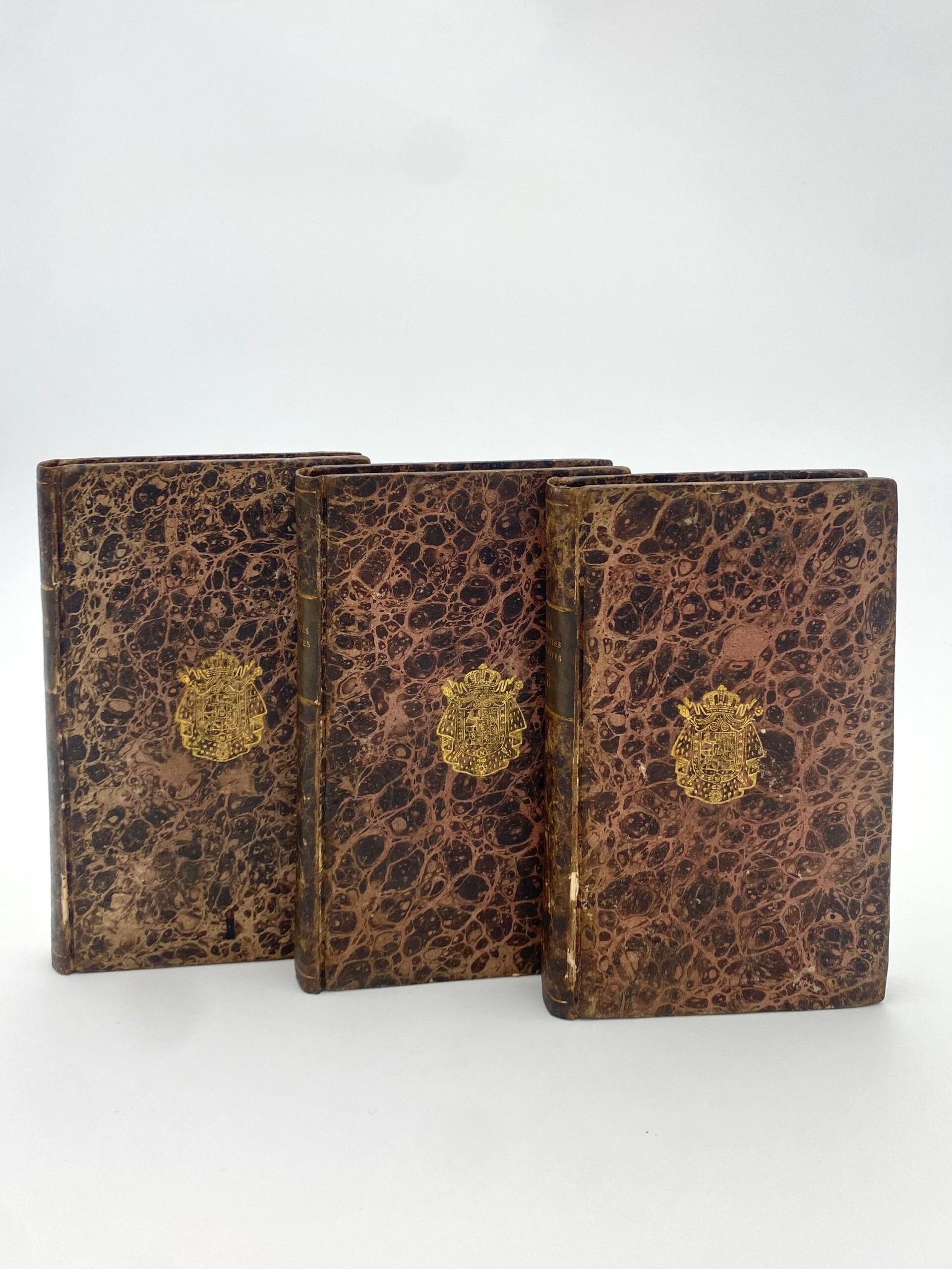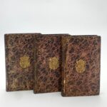3 Bände. Marmorierte Buntpapierbezüge mit dem Wappen von Jérome Bonaparte in Gold auf Vorder- und Hinterdeckeln, Rückenschildchen aus grünem Kalbsleder mit Titel in Gold. Vorsätze mit Ex-Libris von Pierre Bergé.